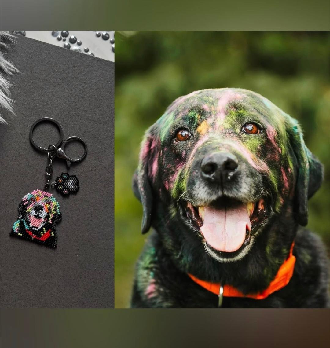 Transformă fotografia animalului tău de companie într-un accesoriu unic cu acest breloc handmade personalizat, realizat manual din mărgele fine. Fie că este vorba de câine, pisică sau alt animăluț, fiecare breloc este creat pe baza pozei tale, pentru a reda cât mai fidel expresia, culoarea și personalitatea prietenului tău necuvântător.
